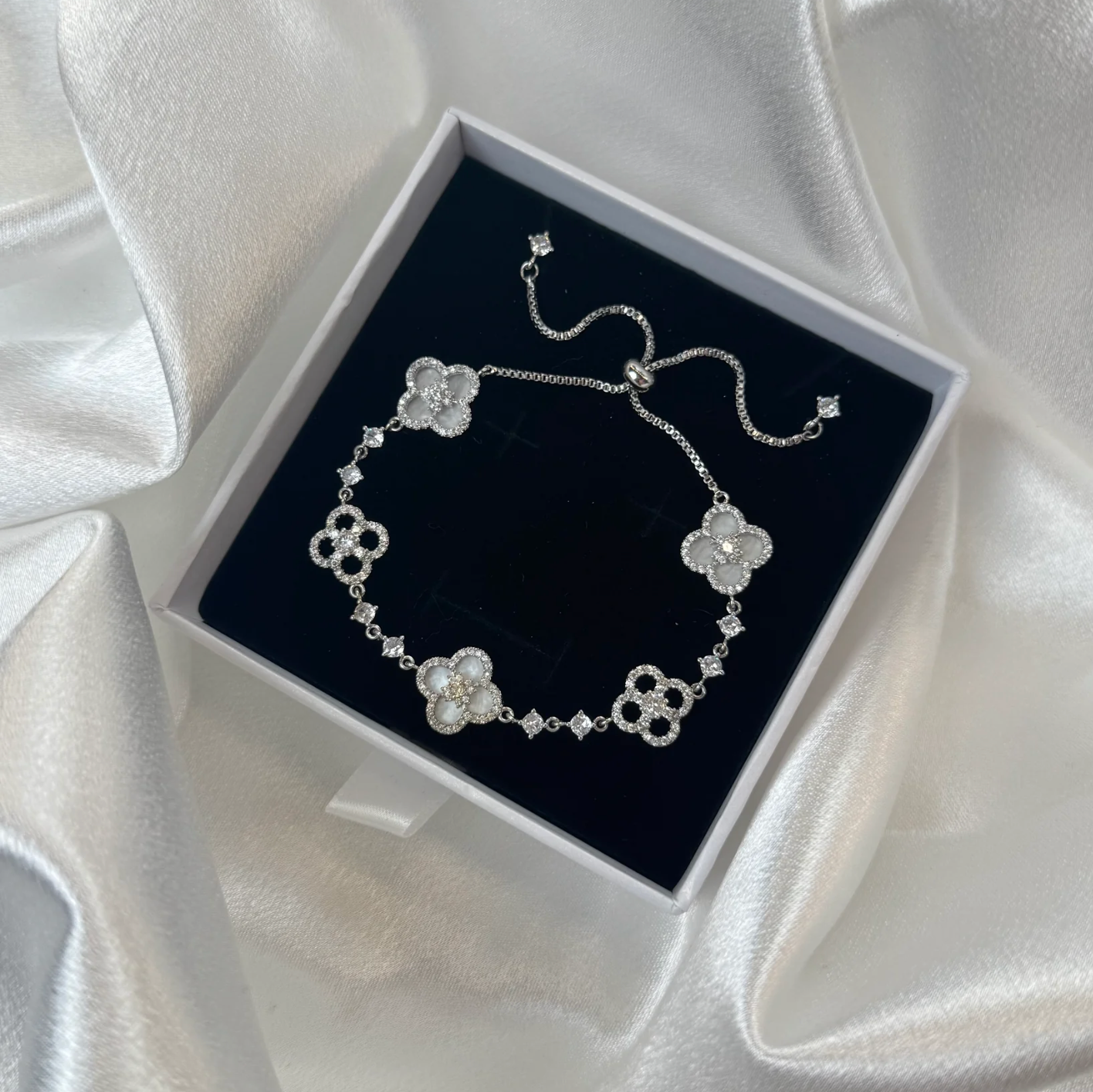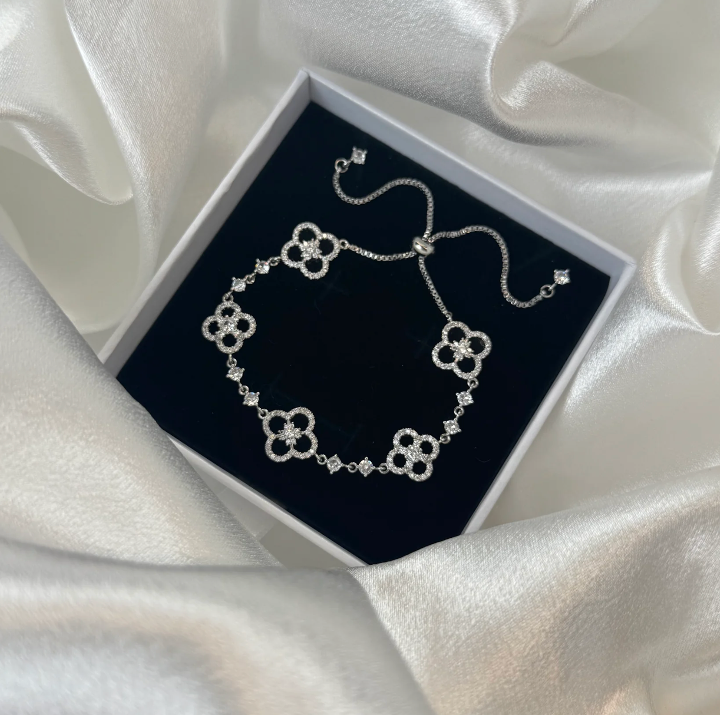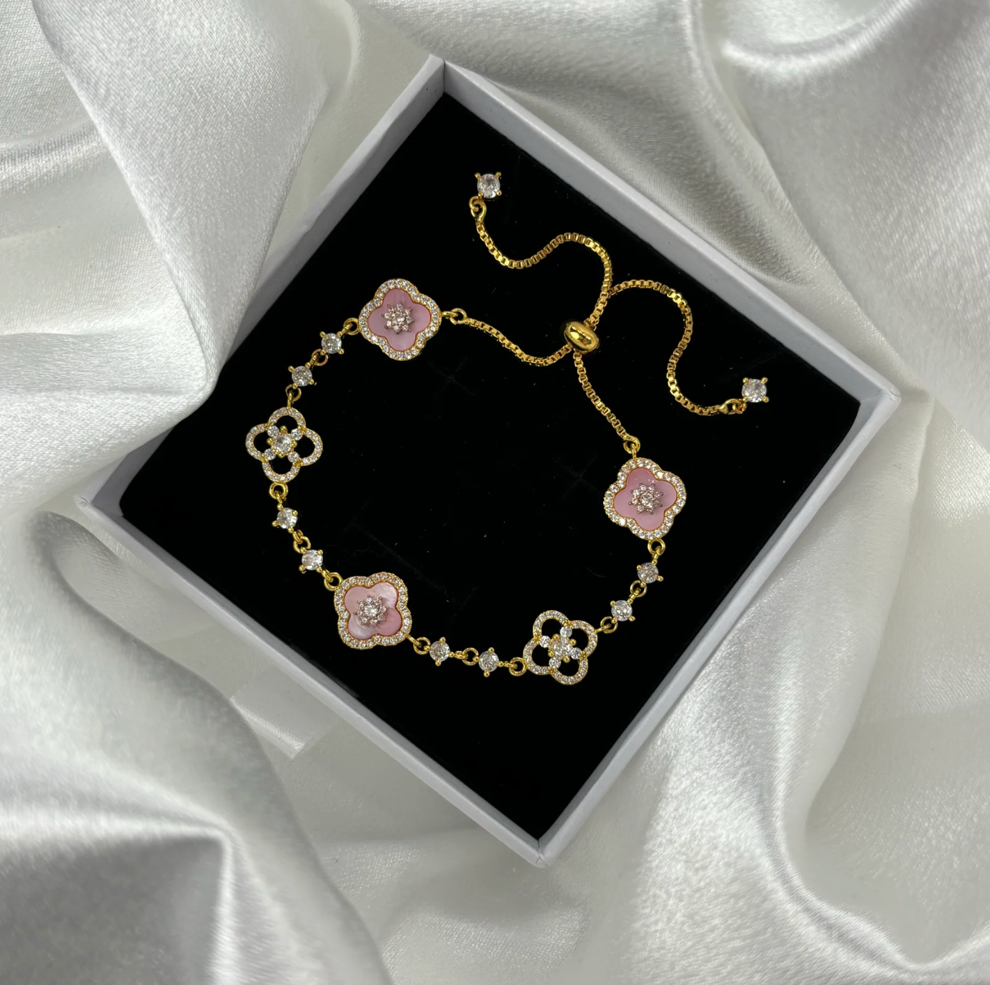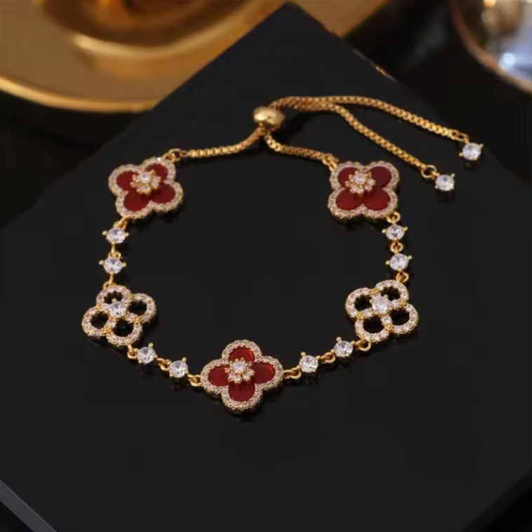 Poczuj się jak prawdziwa dama 👑 Bransoletka z kwiatowymi zdobieniami i połyskującymi kryształkami to perfekcyjne dopełnienie każdej stylizacji ✨